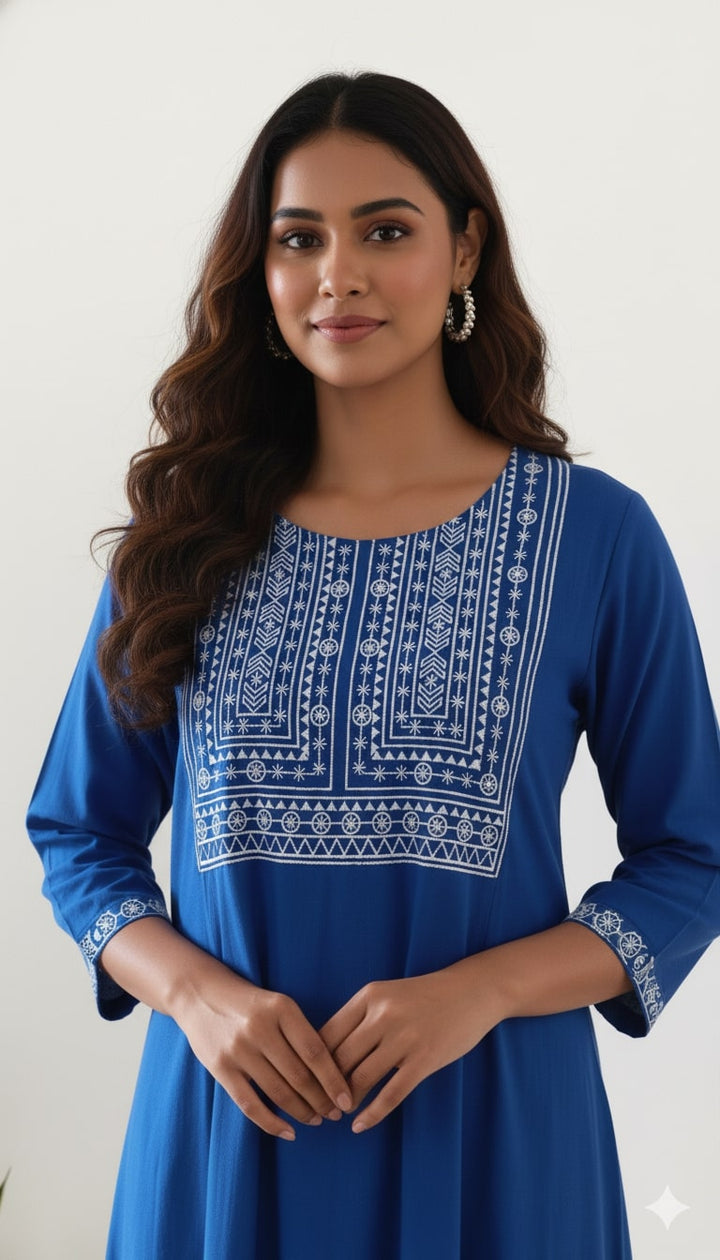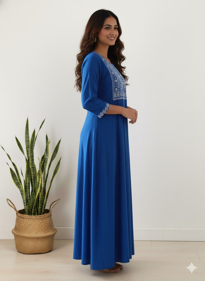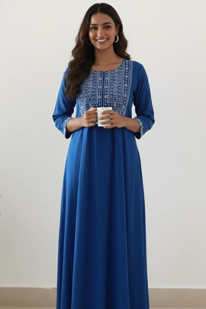 Experience comfort and elegance with the Indigo Viscose Premium Embroidered Nighty. Crafted from soft viscose fabric, it offers breathable wear ideal for restful nights. The intricate embroidery adds a refined touch, blending style with relaxation. Designed to provide a gentle fit, this nighty ensures ease of movement and lasting softness against the skin. Perfect for enhancing your nighttime routine with a blend of luxury and comfort.