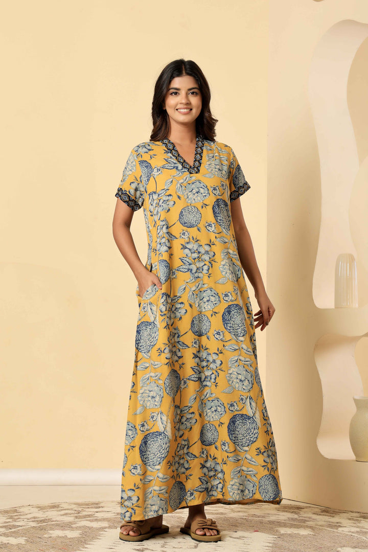 Experience comfort and elegance with the Mustard Viscose Premium Embroidered Nighty. Crafted from soft viscose fabric, this nighty offers breathable wear ideal for restful nights. The intricate embroidery adds a refined touch, elevating your loungewear with subtle sophistication. Its lightweight design ensures ease of movement while maintaining a flattering silhouette, making it a perfect blend of style and practicality for nighttime comfort.
