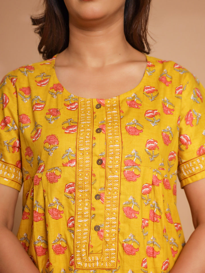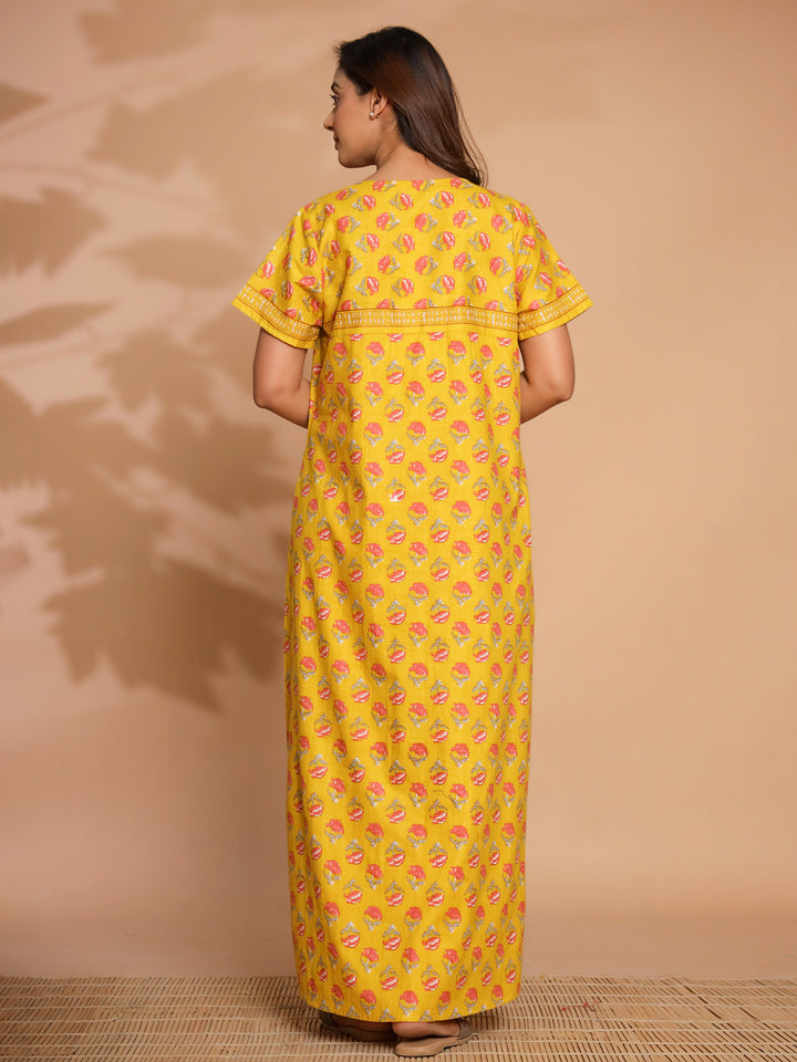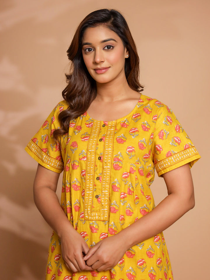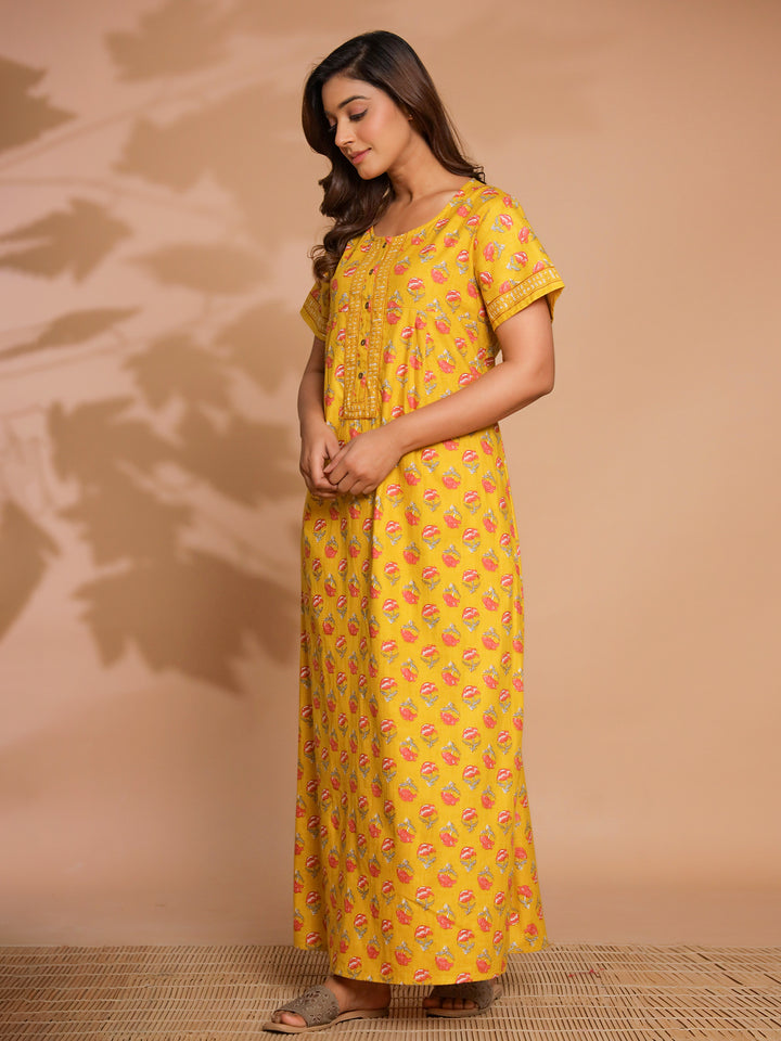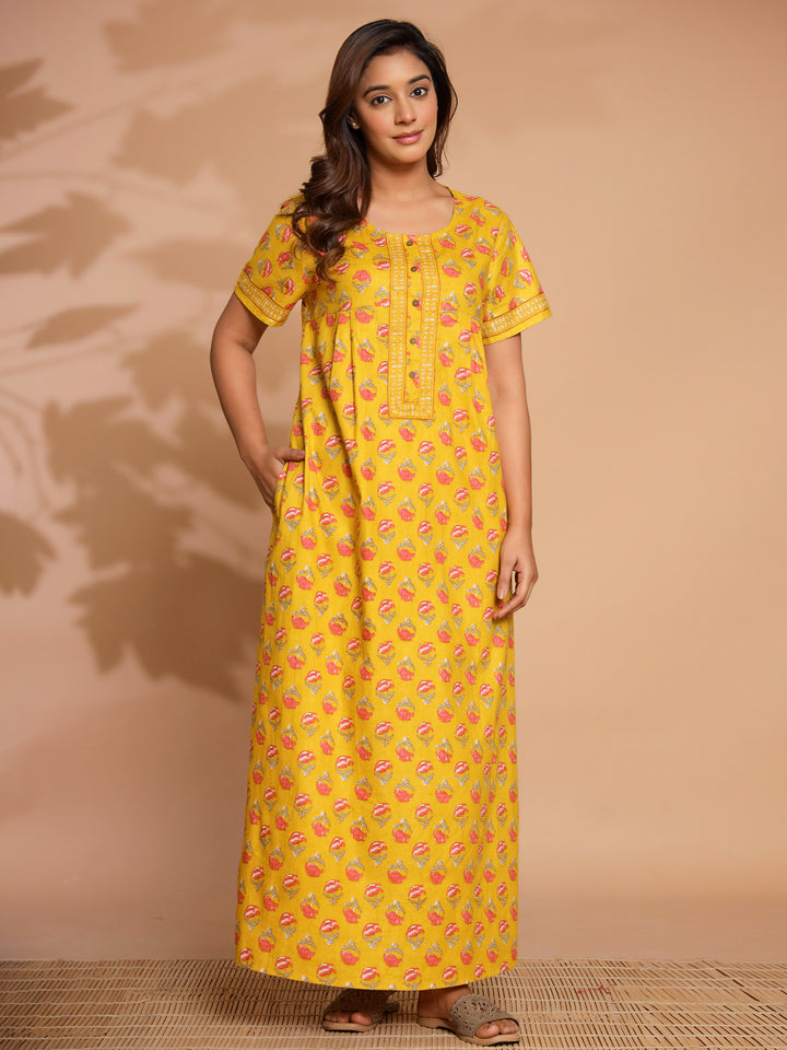 Yellow Cotton Essential Button-Up Nighty